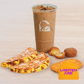 At your nearby Taco Bell location in Penn Valley, CA, you can find a great selection of Mexican inspired breakfast menu items. Choose from classic breakfast burritos like the Cheesy Toasted Breakfast Burrito and the Grande Toasted Breakfast Burrito, or try newer innovations like the Breakfast Crunchwrap. We also offer premium hot coffee and regular iced coffee, so make sure to grab a drink to complete your breakfast order. Taco Bell has a variety of breakfast burritos, breakfast sandwiches and coffee drinks to choose from.