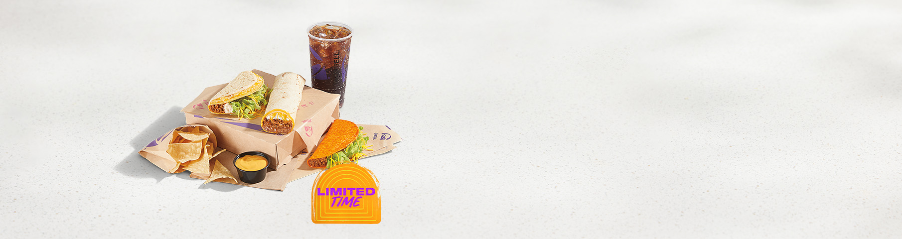 Includes a Cheesy Gordita Crunch, Beefy 5-Layer Burrito, Doritos Locos Taco, Chips & Cheese, Medium Drink