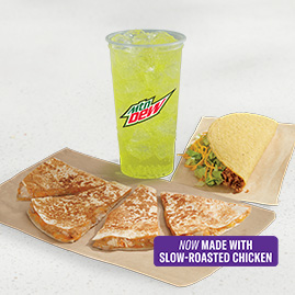 What could be better than a Chicken Quesadilla? How about a Chicken Quesadilla served with a taco and a fountain drink? At Taco Bell in Omaha, NE you can find a delicious array of combos to satisfy your Mexican inspired food craving at any time throughout the day.