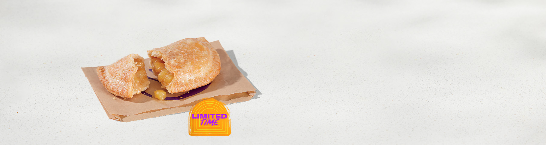 A golden, crispy empanada with warm apple pieces and a creamy caramel filling - sweet, hand-held, and craveable.