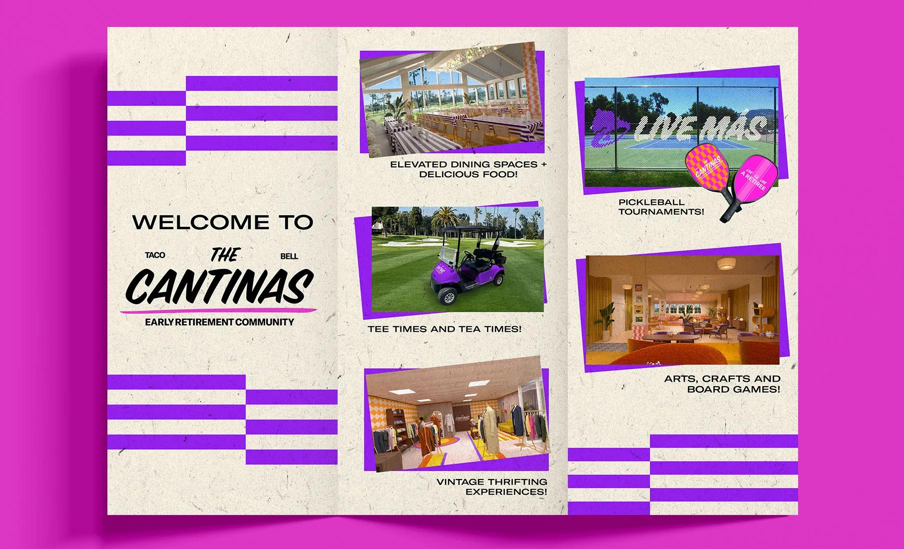Irvine, Calif. (August 8, 2024) – Hold the rotary phone and pack your bags Taco Bell fans and early retirees. Behold a behind-the-scenes, first look at The Cantinas, Taco Bell’s early retirement community exclusively for Rewards Members coming to San Diego next weekend. More than just a weekend getaway, it’s a chance to embrace and fuel youth culture’s slow living, senior-at-heart lifestyle. Wake up to an early morning tee time, grab your friends for aerobics, pass the time with crochet classes, arts and crafts and pickleball all before drifting off to sleep at 8 p.m. after an early bird dinner. The craving for early retirement is so strong that memberships to The Cantinas sold out in under three minutes. Here’s what’s in store for retirees!