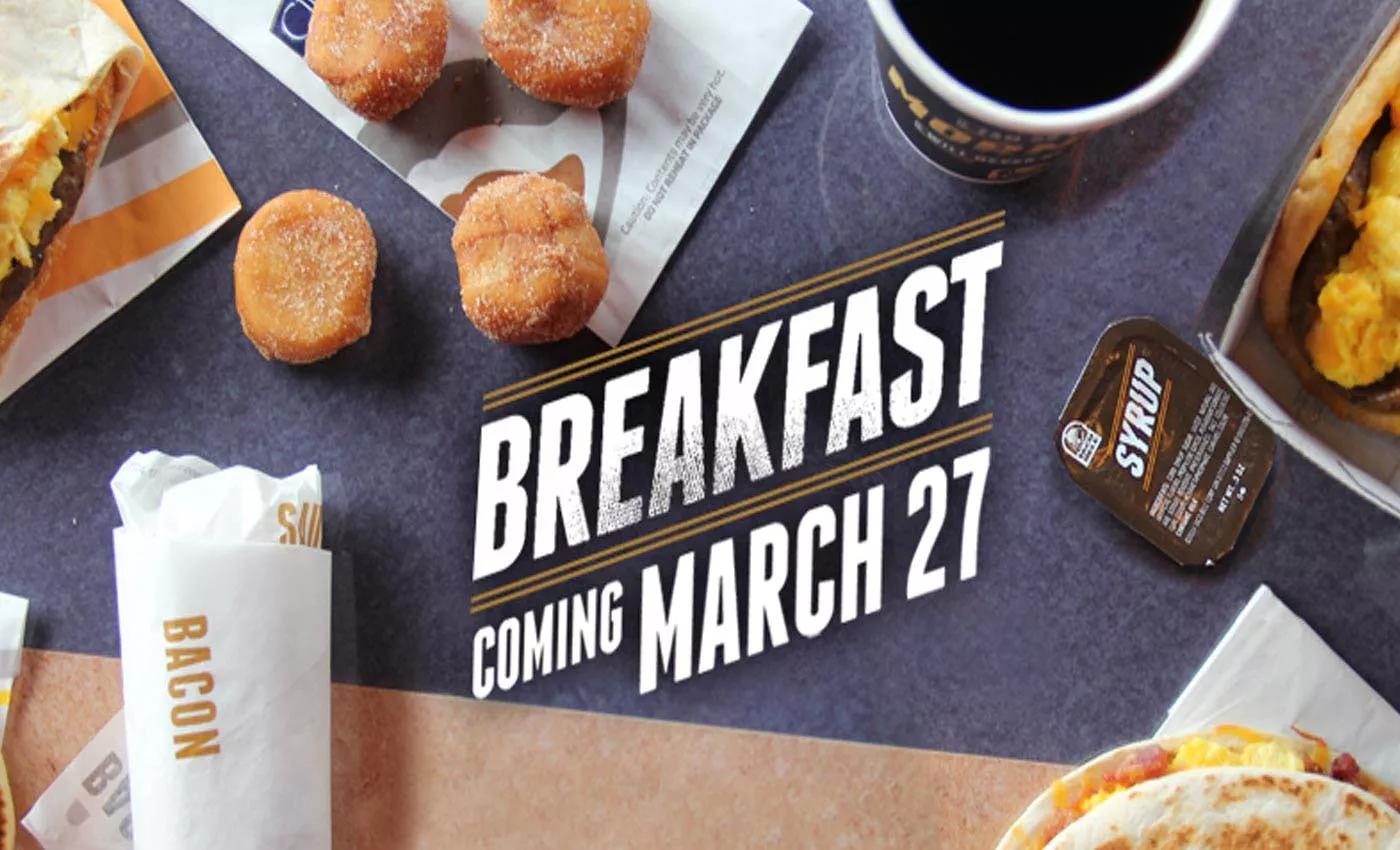 IRVINE, Calif., Feb. 24, 2014 – The wait is almost over. Taco Bell® Breakfast, which will offer the highly anticipated and revolutionary Waffle Taco, the all-in-one A.M. Crunchwrap™, and the already loved Cinnabon® Delights™, will be available in restaurants nationwide starting March 27, 2014 from 7am to 11am, or earlier. After breaking through and successfully introducing a variety of platforms and products – including FourthMeal®, Doritos® Locos Tacos and Cantina Bell® – Taco Bell is launching the brand’s largest, most extensive menu since it first opened its doors more than 50 years ago. Taco Bell Breakfast comes as a change to the traditional quick service restaurant (QSR) breakfast routine, bringing the brand’s distinctive approach to a crowded breakfast sandwich market. Taco Bell will not just deliver but will bring a little más to morning time, offering consumers a break from the usual. “Fans already like to come to Taco Bell for lunch and dinner, and they share with us their love of late night. Now they’re not just asking, but telling us they want Taco Bell Breakfast,” said Taco Bell President, Brian Niccol. “To give customers the great-tasting food and Live Más experience, with value in mind, we have invested in our most extensive training ever for Team Members and will not require any major new equipment for operators – making for a holistic effort our teams are proud of and our owners are confident to execute.” Taco Bell Breakfast is classic breakfast tastes (eggs, sausage, bacon and hashbrowns) with a Taco Bell twist – products uniquely wrapped up and portable for consumers’ “on-the-go” lifestyle. Fans are already taking to social media to buzz about their appetite for the Waffle Taco – a warm waffle wrapped around a hearty sausage patty or flavorful bacon, with fluffy scrambled eggs and cheese, and served with a side of sweet syrup. For an all-in-one breakfast solution, the A.M. Crunchwrap™ offers a morning twist on the iconic Crunchwrap® featuring classic breakfast tastes of fluffy scrambled eggs, a golden crispy hash brown, melted cheese and flavorful bacon (or a hearty sausage patty or premium thick cut steak), all wrapped up in a warm flour tortilla. Taco Bell’s full breakfast menu will be offered at more than 5,500 participating restaurants nationwide and will feature the following unique items, all with the great value Taco Bell can provide: the Waffle Taco, the A.M. Crunchwrap™, Cinnabon® Delights™, Breakfast Burrito – Bacon, Breakfast Burrito – Sausage, Steak and Eggs Burrito, A.M. Grilled Taco – Bacon, A.M. Grilled Taco – Sausage, Sausage Flatbread Melt, Hash Brown, Premium Hot Coffee and Tropicana Orange Juice. “Breakfast is the fastest growing day part in QSR, and after years of the same old thing, we’re confident our breakfast will wake up customers’ morning routine,” said Taco Bell Chief Marketing Officer, Chris Brandt. “Taco Bell will bring them a classic breakfast experience, leading with the Waffle Taco and A.M. Crunchwrap, but also offer a menu of breakfast burritos, tacos and value offerings plus a pipeline of new products to continue waking up breakfast options and connecting with our fans.” The campaign will be supported with television and radio advertising led by Deutsch L.A., in-store POP and packaging by Draftfcb, as well as digital, social and public relations support from DigitasLBi and Taylor respectively. “Taco Bell Breakfast will be one of the brand’s priority initiatives of the year, along with a vigorous development plan to increase accessibility of restaurants and a mobile platform that puts the Taco Bell menu board and payment in customers’ hands,” said Niccol. “These key initiatives will continue momentum for the brand’s strong and growing relevance with Millennials, while working towards the aggressive goal to double revenue and add 2,000 restaurants by 2022.”