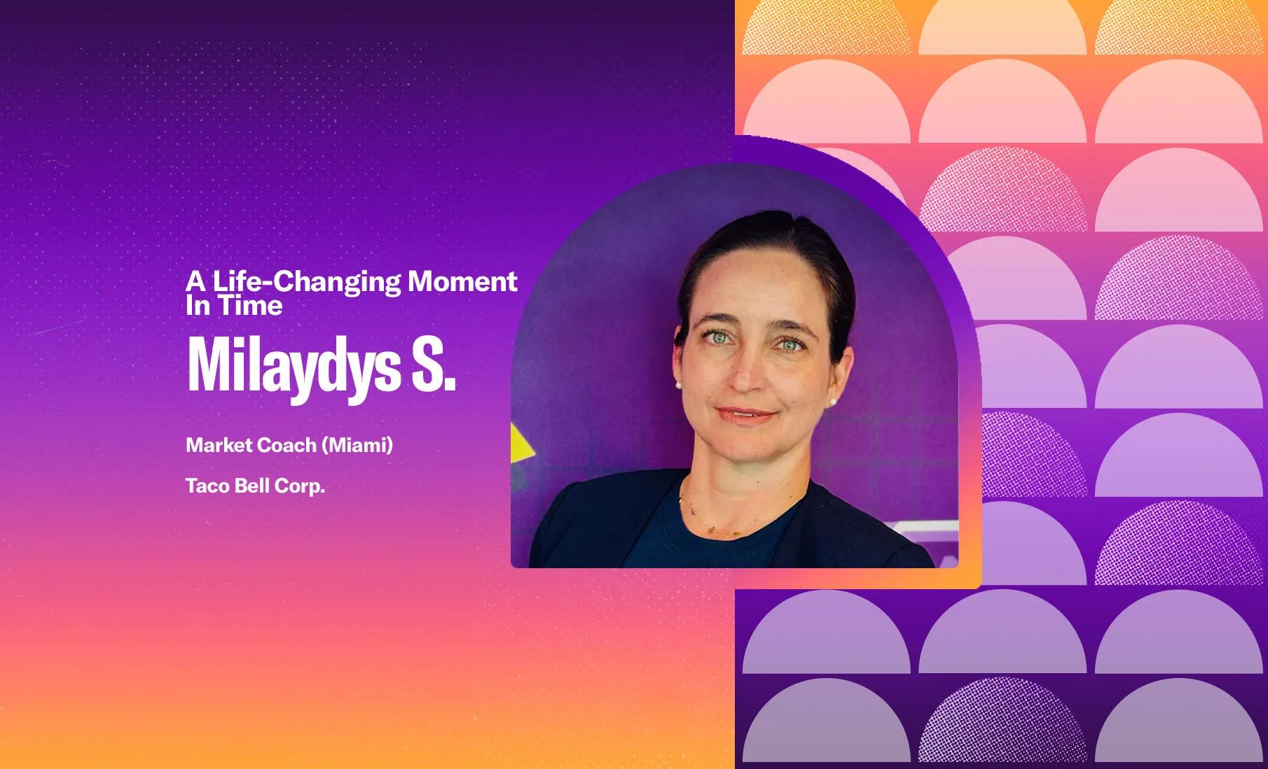 Then, Milaydys came to Taco Bell where she started off as an Assistant General Manager. From running seven locations in Miami as an Area Coach, she was quickly promoted to Market Coach running 45 locations. Although Milaydys saw her promotions as an opportunity to grow, she was hesitant because of the language barrier. This quickly changed when she got a visit from former Chief Operating Officer and President of Taco Bell Corp., Mike Grams.
