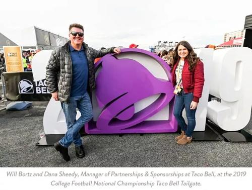 Question: How would you describe your job as Director of Brand Partnerships & Sponsorships? Will Bortz: I handle strategic planning, negotiation, and execution of all brand partnerships, sponsorships, and promotions for Taco Bell. In my position, I am responsible for Taco Bell’s sports marketing relationships with the College Football Playoff, National Basketball Association and Major League Baseball, leading sponsorship integration with media partners ESPN, Fox, Turner, MTV, iHeartRadio, various gaming and promotional initiatives with Xbox, Sony PlayStation, and Blizzard as well as our music program Feed the Beat.