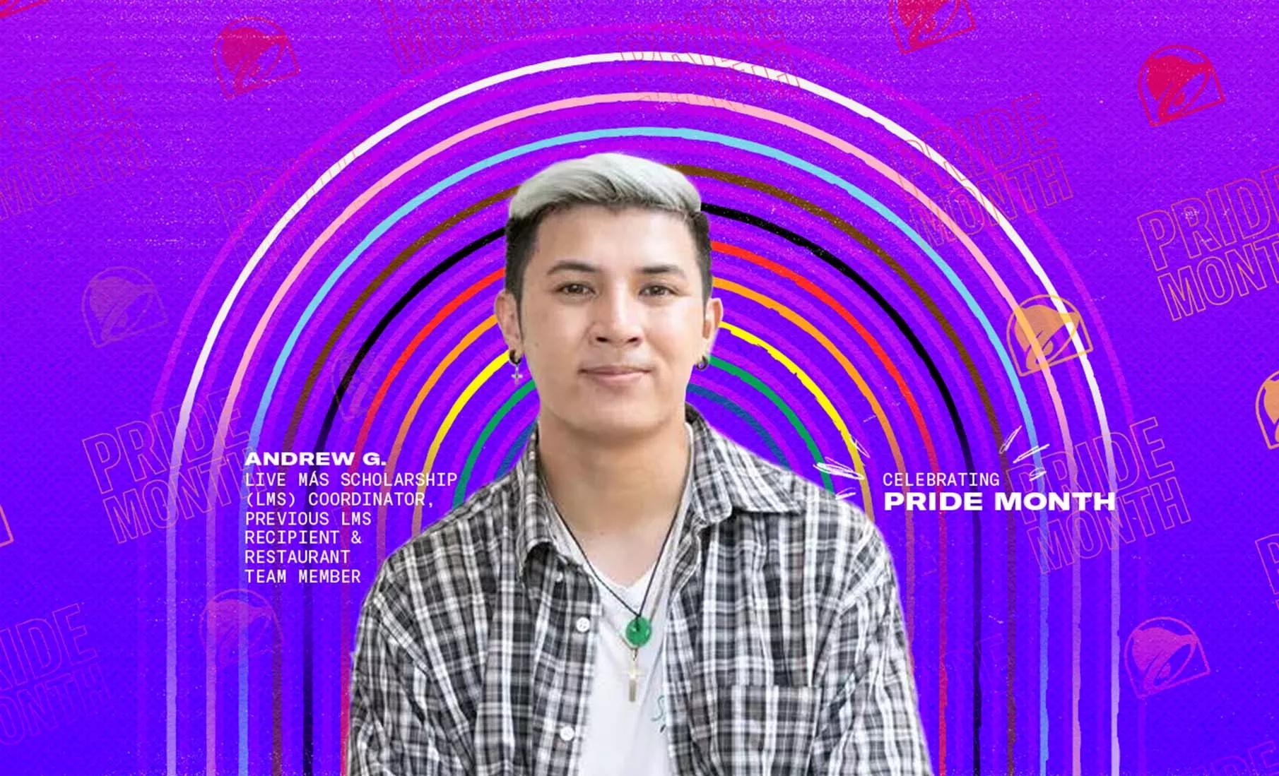 Years later, Andrew expanded not only his personal career but his Taco Bell career by joining the Taco Bell Foundation as a Live Más Scholarship coordinator. “In my current role, I can use my love of Taco Bell and my passion for fostering young people’s passions and make it my full-time job,” he noted. “Moving into the corporate world was scary, but even in my interview, the comfort I felt knowing I was walking into a supportive and accepting environment made me so much more confident.”