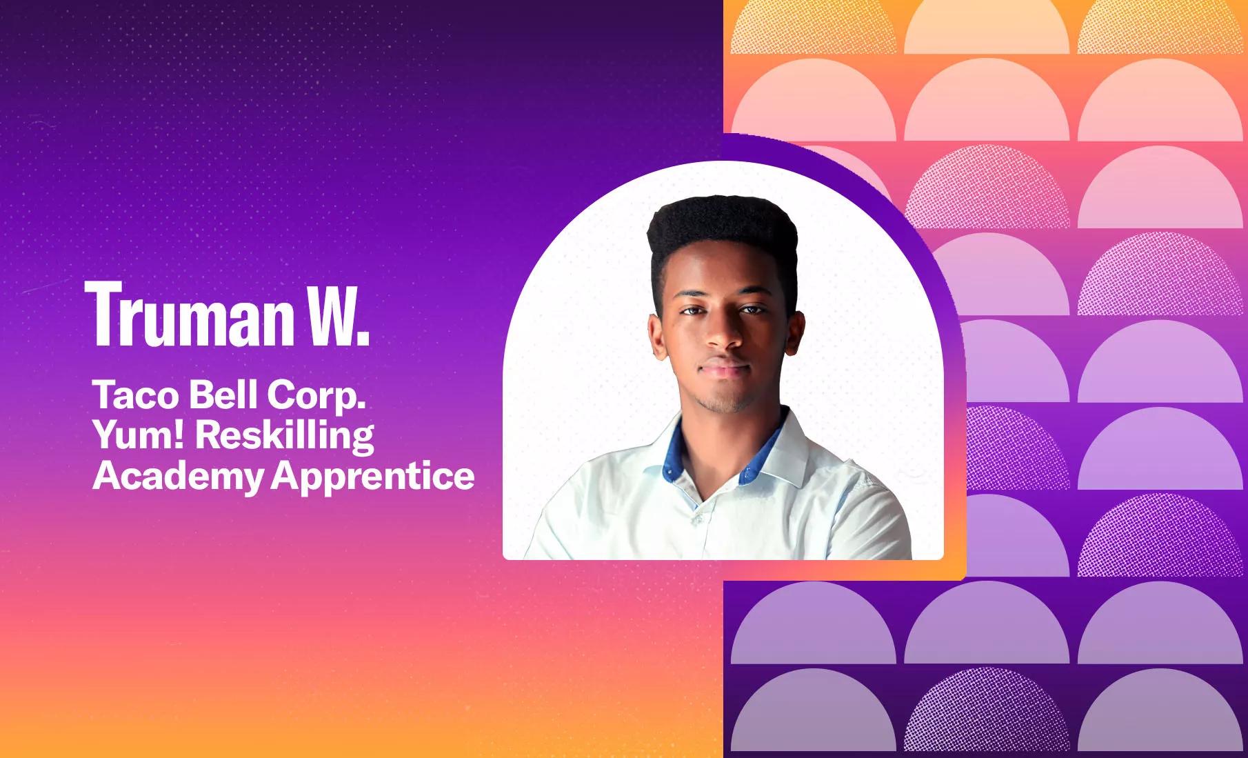 During high school, team member Truman was working at Taco Bell while simultaneously balancing his academics. Shortly after graduating, Yum!’s Reskilling Academy Apprenticeship selected him into its program - no college degree required.